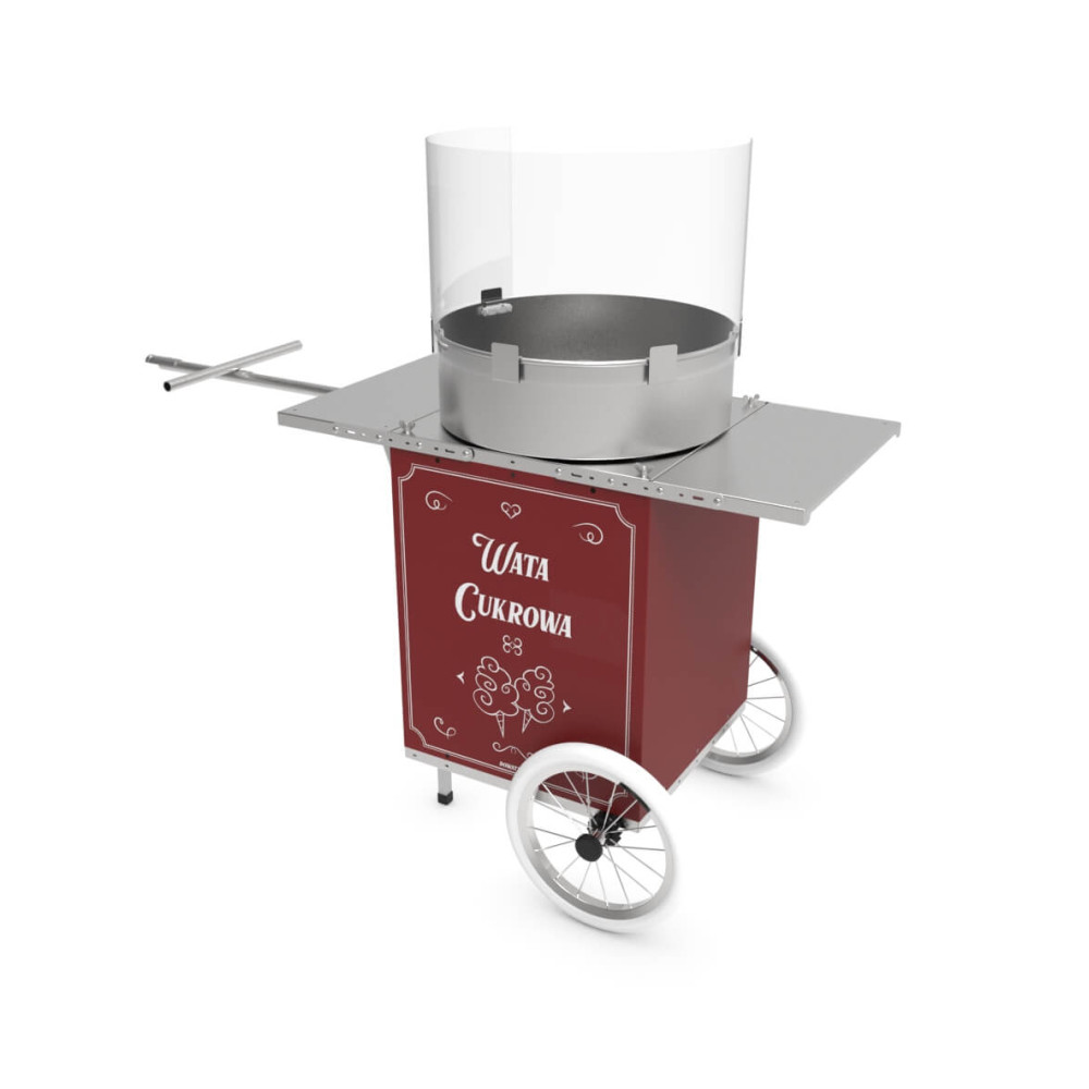 Elektryczne urządzenie do waty cukrowej zasilane 230V. Pełna regulacja i widoczność zarówno mocy ogrzewania jak i obrotów silnika, co znacznie ułatwia pracę na poprawnych parametrach. Nie potrzebujesz dodatkowego stołu, aby zacząć sprzedaż, kółka ułatwiają transport złożonej maszyny.