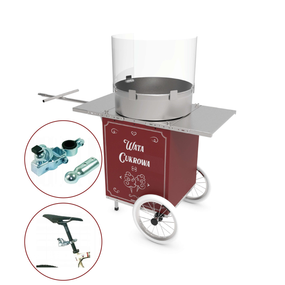 Maszyna do waty cukrowej podpinana do roweru czerwona retro