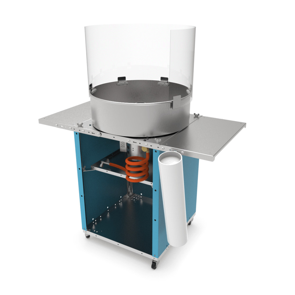 Wolnostojąca maszyna do waty cukrowej w kolorze niebieskim. Stylowy design retro nawiązuje do lat 50. i 60. ubiegłego wieku, co przyciąga wzrok na każdym wydarzeniu. Każda nasza maszyna posiada atest PZH. Całe urządzenie wykonane ze stali nierdzewnej gwarantuje wieloletnią trwałość oraz łatwość w utrzymaniu higieny.