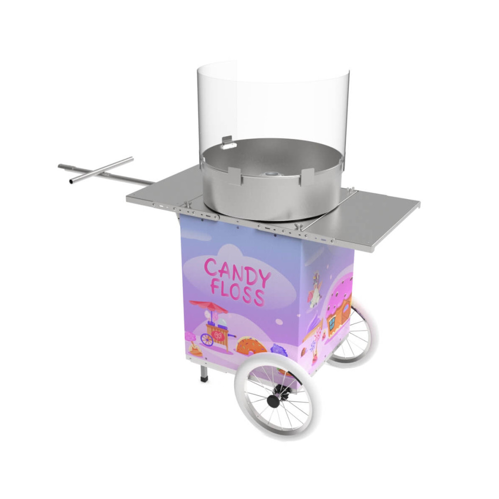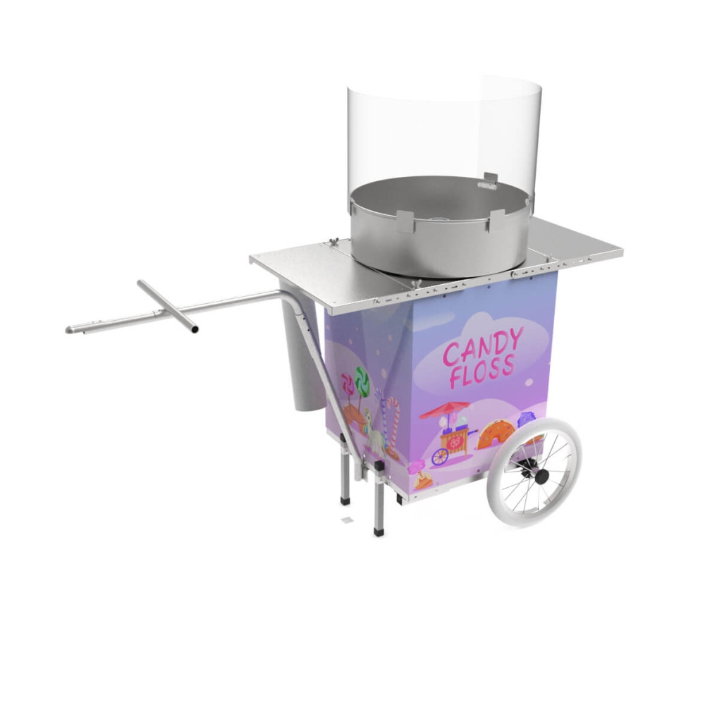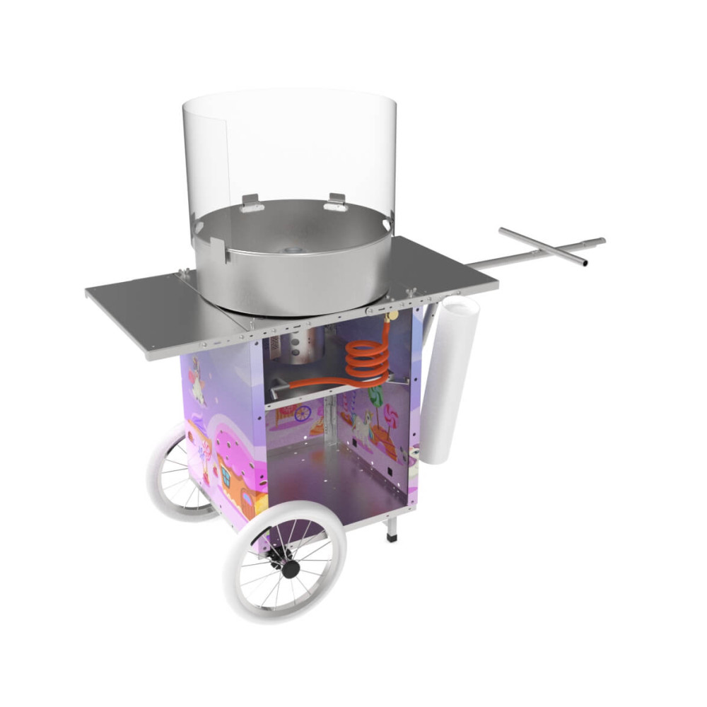 Mobilne stoisko do waty cukrowej na dużych kołach jednorożce