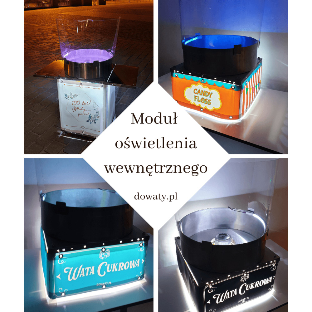 Zdobądź uwagę klientów również po zmierzchu, dodając do swojej maszyny moduł oświetlenia. Specjalnie przygotowane LED-y oświetlą zarówno misę, jak i wnętrze maszyny, tworząc jeszcze lepszy efekt!