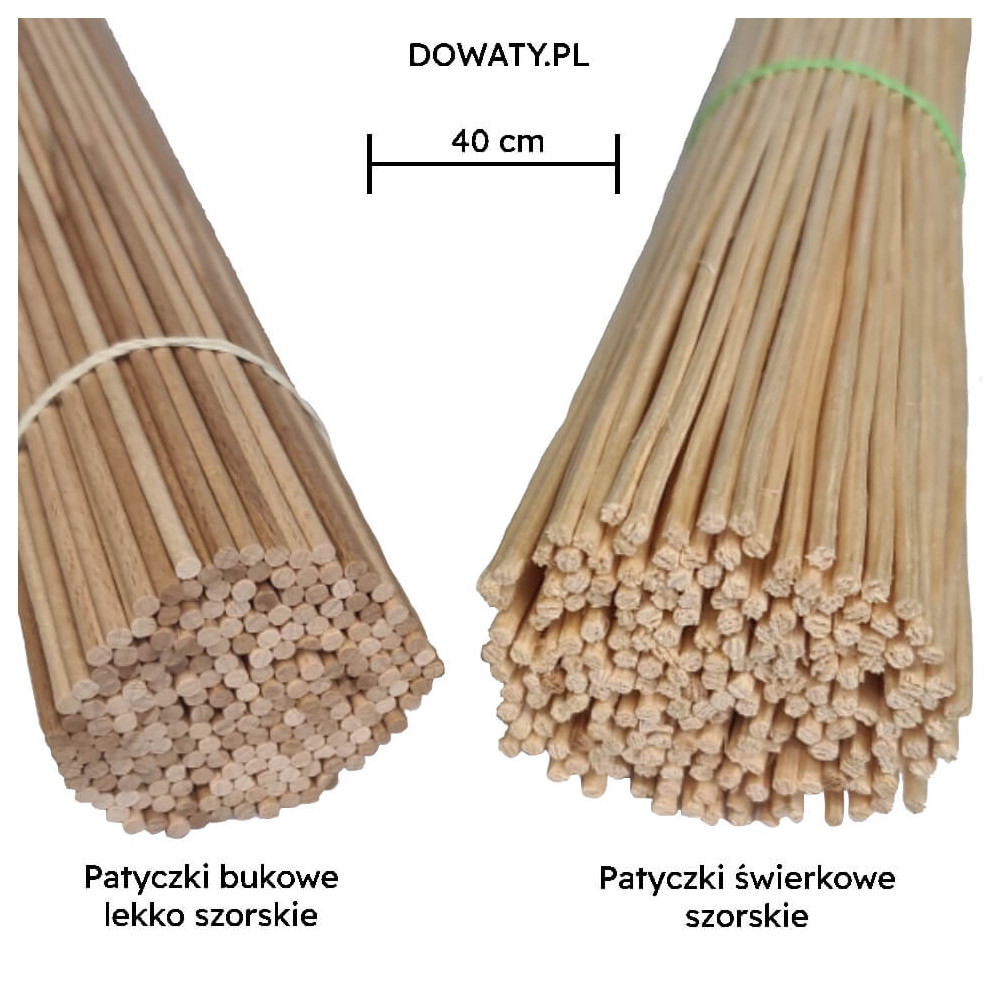 Patyczki są biodegradowalne – drewno nielakierowane, bukowe, lekko szorstkie.