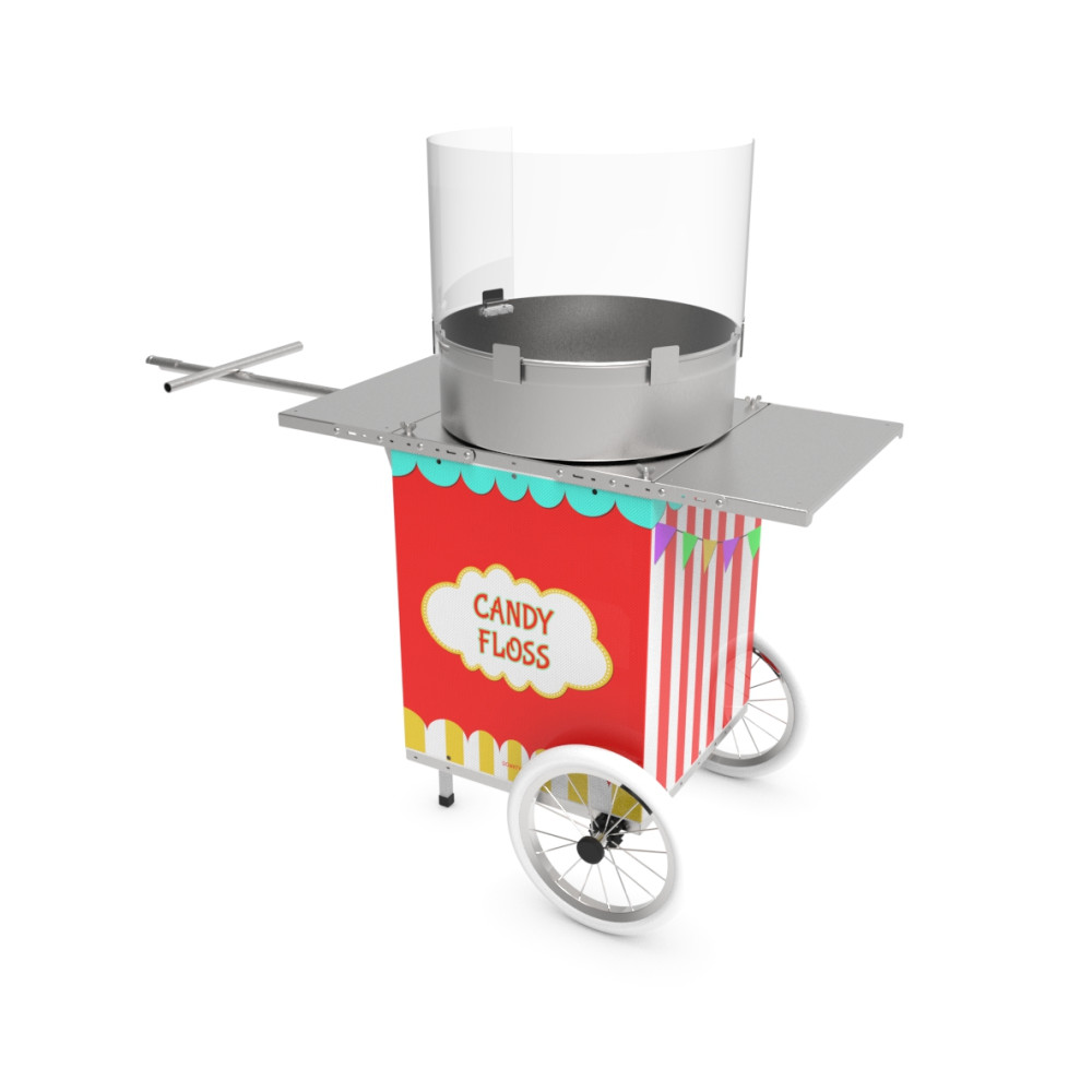 Maszyna do waty cukrowej z dużymi kołami - mobilna przyczepka rowerowa