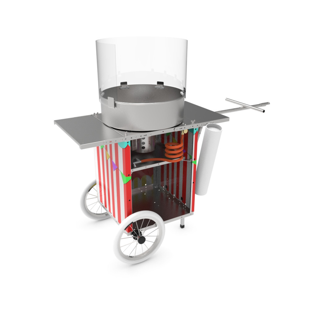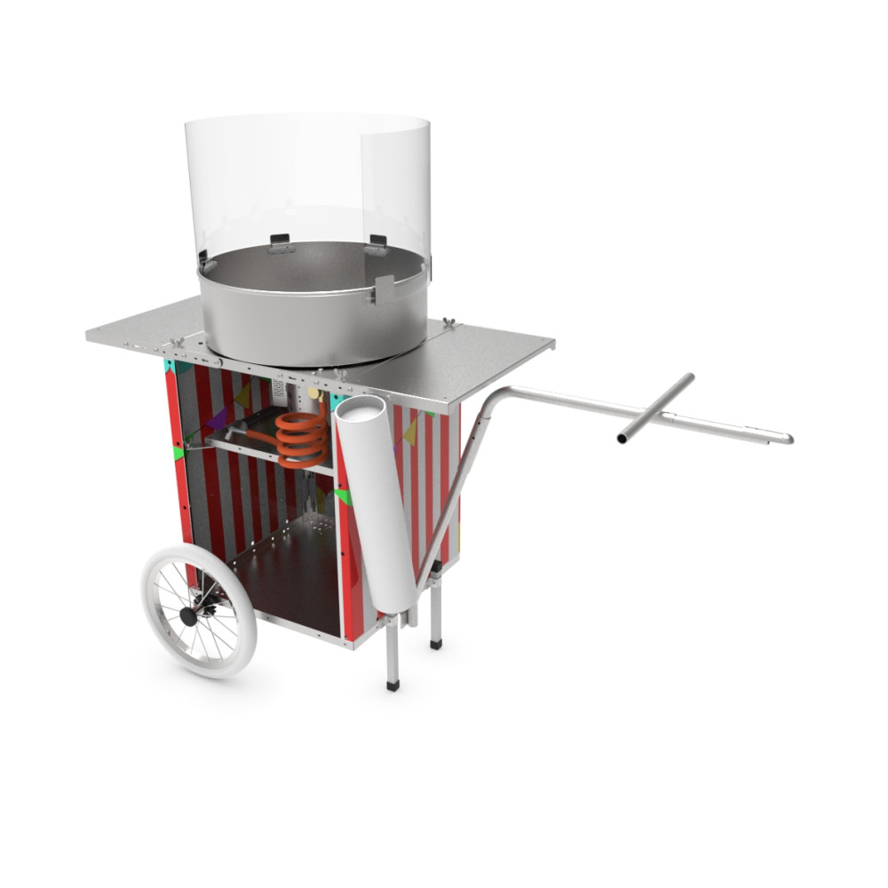 Model Bike wzorowany na lunaparkiu to profesjonalne urządzenie do waty cukrowej w kolorowej odsłonie, stworzonej z myślą o festynach i wesołych miasteczkach. Dzięki specjalnemu mocowaniu maszyna staje się przyczepką rowerową, co pozwala na ekologiczny i tani transport. Każda maszyna Bike posiada atest PZH i jest wykonana z trwałej stali nierdzewnej.
