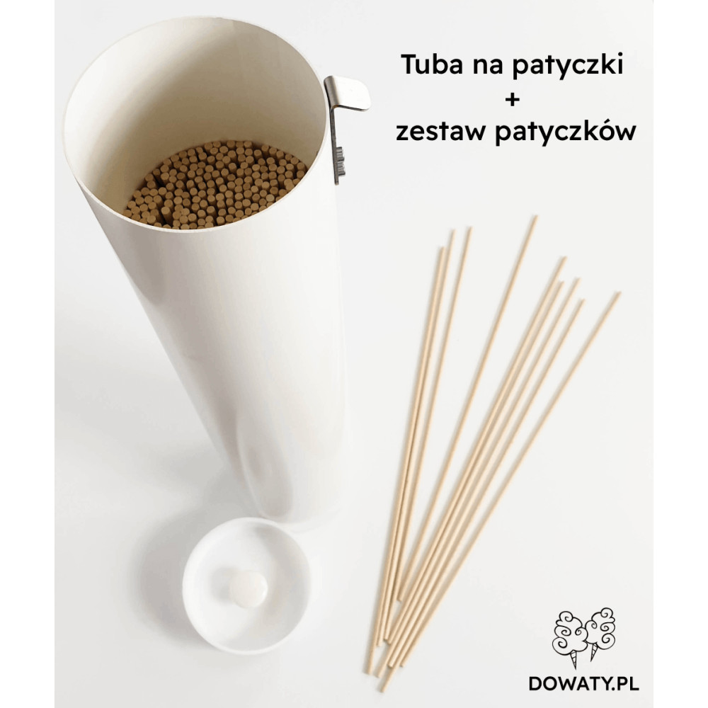 Niezwykle poręczna biała tuba o długości ok. 45 cm. Miej patyczki zawsze pod ręką i zachowaj pełną higienę stoiska!